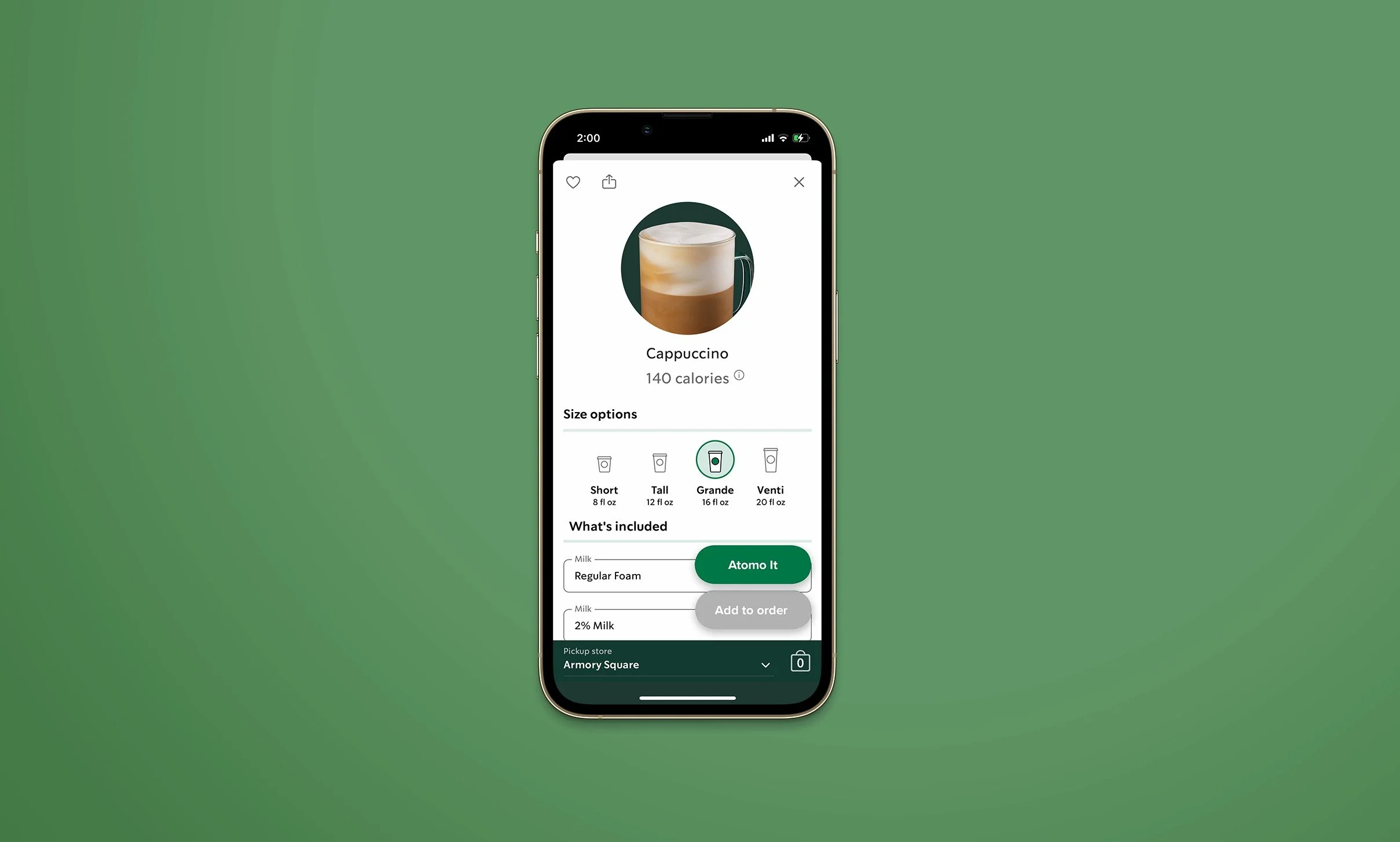 We introduced a partnership between Starbucks and Atomo, an innovative company that has engineered a carbon-negative coffee. Convert Starbucks customers to the Atomo version of their favorite coffee drinks.